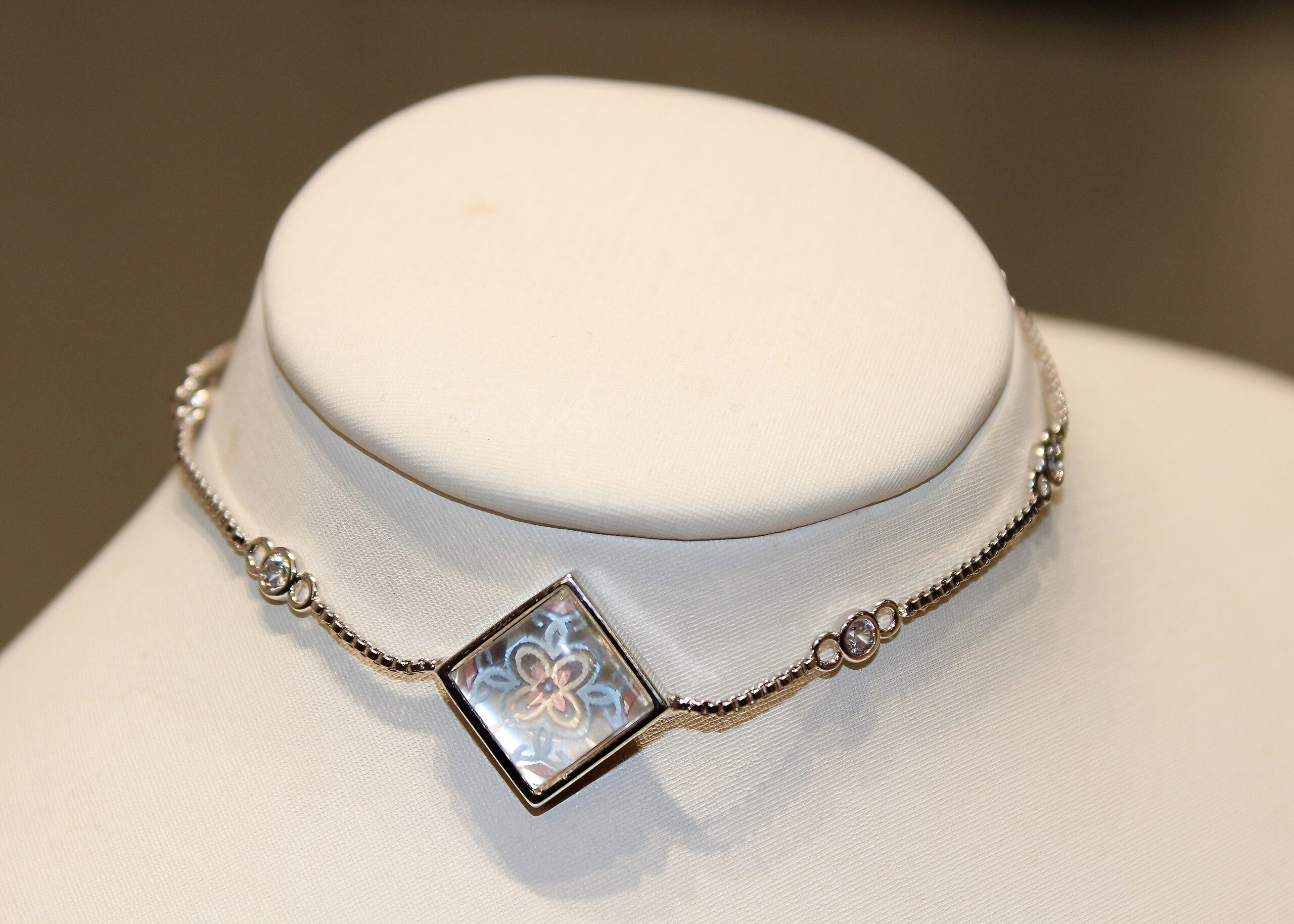 Materials: Copper plated with white gold, natural white butterfly shell, epoxy resin, zirconia